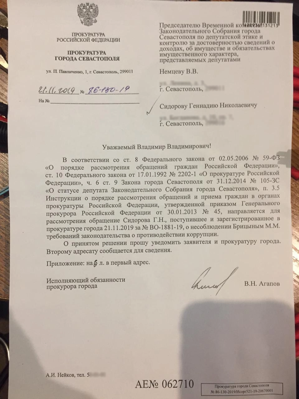 Вскоре член местного отделения КПРФ и активист ОНФ Геннадий Сидоров написал обращение в городскую прокуратуру с просьбой проверить депутата заксобрания второго созыва на предмет коррупционной составляющей.