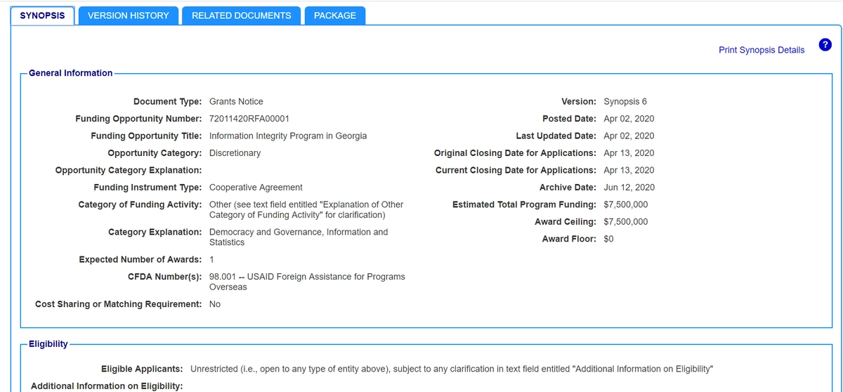 Агентство США по международному развитию (АМР США) разыграло грант на 7,5 миллионов долларов. На эти деньги победитель должен построить в Грузии целую инфраструктуру из СМИ, которая займется информационным противодействием России. Грант уже закрыт, но кому досталась эта сумма пока неизвестно.