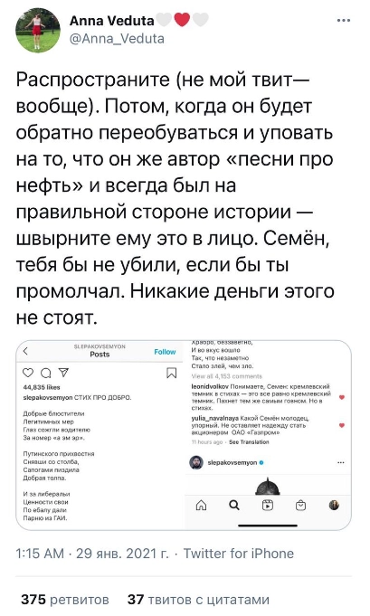 Склонность к неконституционным действиям, разбалтывание государственного механизма путем уличных протестов и провокаций органов правопорядка — сторонники Навального охотно приняли западные правила игры. Они призывают несовершеннолетних участвовать в незаконных протестных акциях и непринужденно рассуждают о грядущих казнях над неугодными. Стоит вспомнить, например, массовую травлю Семена Слепакова в Сети. Когда сторонники Навального перейдут от слов к действиям — только лишь вопрос времени.