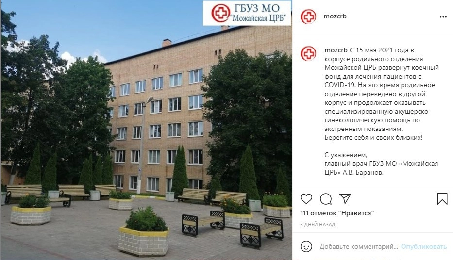 В настоящее время администрацией Можайской ЦРБ проводится реорганизация работы родильного отделения. Для лечения пациентов с COVID-19 в корпусе родильного отделения развернут коечный фонд. На это время родильное отделение переведено в другой корпус и продолжает оказывать специализированную акушерско-гинекологическую помощь по экстренным показаниям. Всем беременным по экстренным показаниям медицинская помощь будет оказываться в родильном отделении Можайской ЦРБ. При плановой госпитализации предусмотрена маршрутизация в медицинское учреждение родовспоможения третьего уровня — Нарофоминский перинатальный центр, — ответили «Ридусу» в ведомстве.