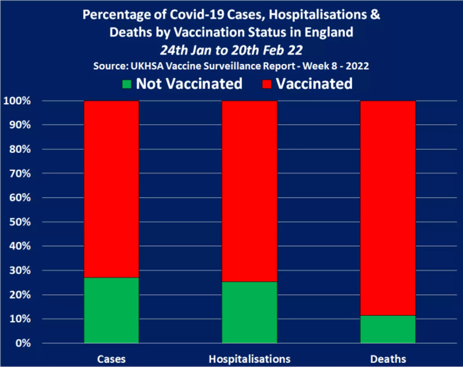 «К примеру, такие данные были получены в Новосибирской области в середине января 2022 года. Анализ всех умерших от ковида в течение последнего квартала 2021 года показал, что всего 9% среди умерших были вакцинированы. Вакцинированы у нас примерно 50% населения. Эти данные доказывают, что вакцинация минимум в пять раз уменьшает смертность. То же доказано и данными из Великобритании, США, Франции, Германии и так далее: среди умерших доля вакцинированных в десятки раз меньше».