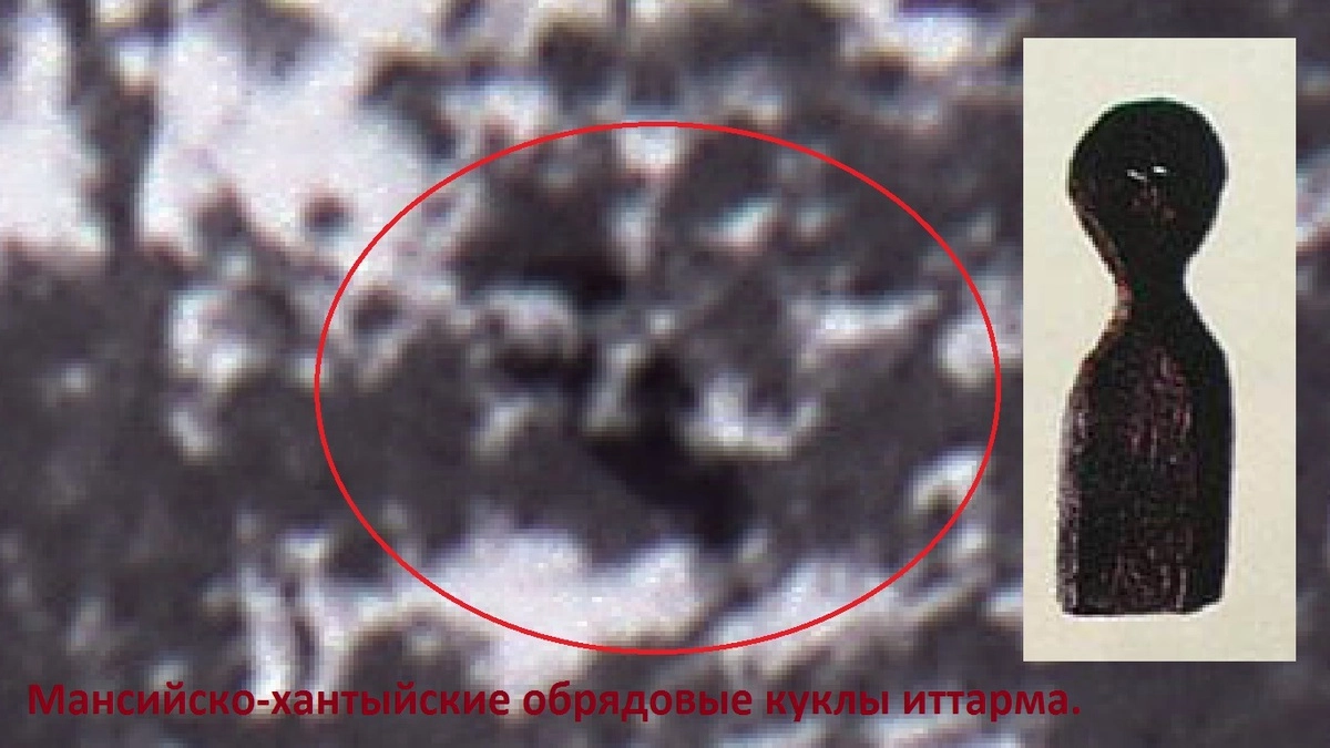 Вторая деталь, на этом же самом снимке, тоже очень любопытна. На ветках деревьев, прямо над головой Иванова, висит обрядовая кукла иттарма. Или же небольшой идол народности манси, тут можно поспорить с этим утверждением. Но больше всего кукла похожа на иттарму.