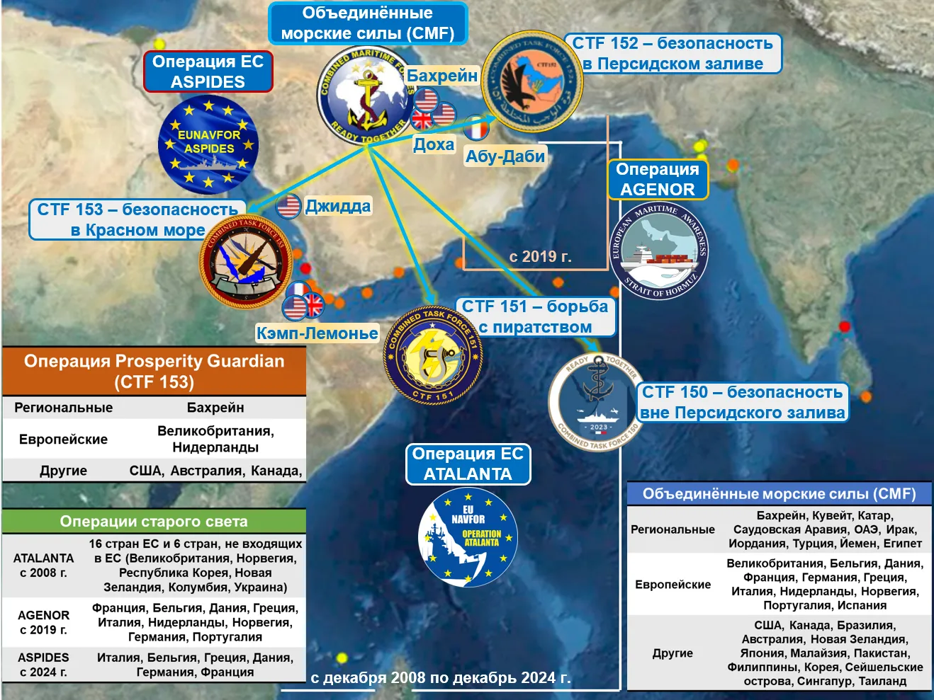 Дания и Германия, конечно, в НАТО, но это не означает, что их фрегаты выполняли задачи в Красном море под флагом альянса, группировок которого там, кстати, нет. Как известно, 18 декабря прошлого года Вашингтон анонсировал проведение операции Prosperity Guardian («Страж процветания») в этом районе. Присоединиться к этой миссии Вашингтон призвал и другие страны с последующим нанесением ударов по йеменским хуситам.