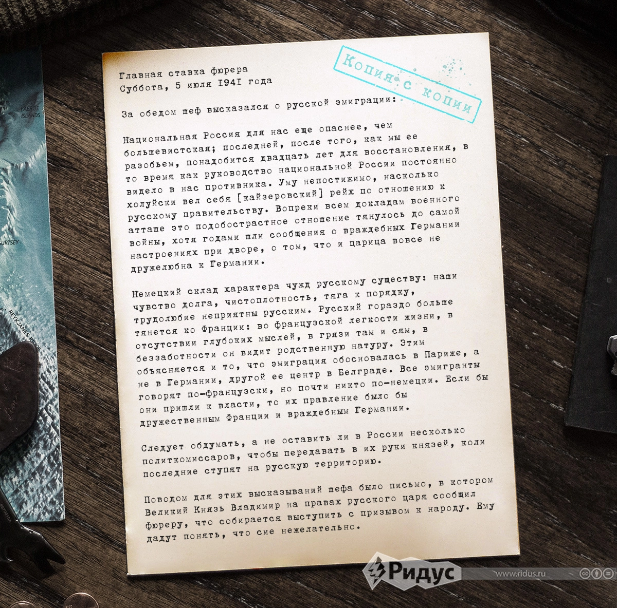 Секретные архивы: Гитлер боялся национальную Россию больше чем большевиков