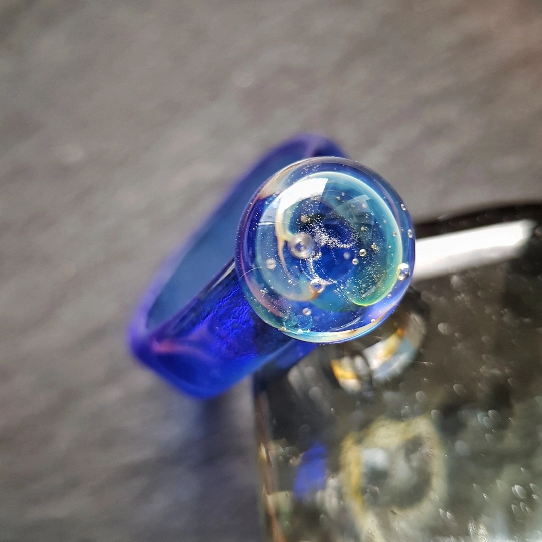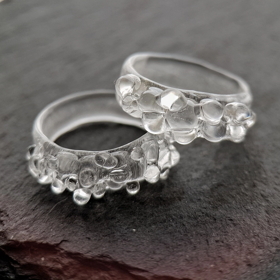 Особенно девушке нравится создавать кольца из стекла. По её мнению, они очень приятные на ощупь и свет на них красиво играет. Но здесь важно только помнить, что стекло есть стекло, поэтому оно может разбиться. Все кольца, которые носит Евгения, до сих пор целы, но лучше их, конечно, не ронять и за штангу в них не хвататься.