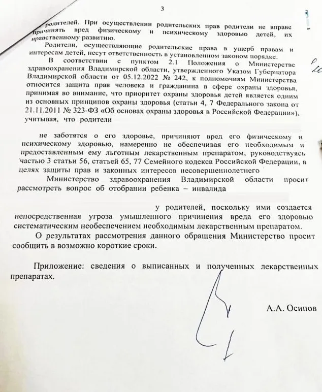 «Ридус» направил запрос в министерство здравоохранения Владимирской области, чтобы выяснить, почему министр на самом деле ставил вопрос об изъятии ребёнка-льготника из семьи и как ведомство видит ситуацию с льготными препаратами в среднерусском регионе.