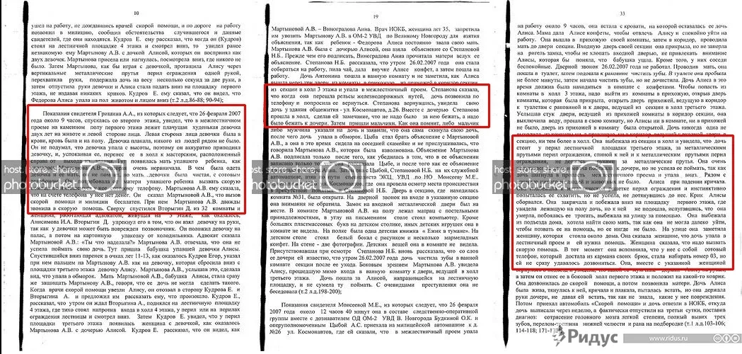 Спустя короткое время версия изменилась: мать вообще не видела, как свалилась ее дочь. Когда Мартыновой-Федоровой стало известно больше подробностей о свидетеле, родилась третья версия показаний: дочь пролезла сквозь прутья решетки. Наконец, в мае 2007 года было решено вернуться к первой версии показаний.