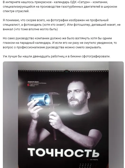 «Вот так выглядит точность»: календарь ОДК засмеяли за неверно взятый штангенциркуль