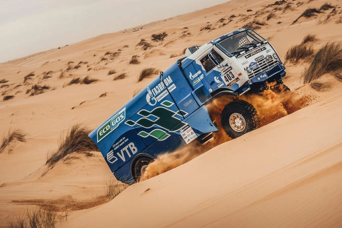 Увы, на проблемах с вязкими мавританскими песками злоключения «газового» КАМАЗа не закончились. За 15 км до финиша спортсменам пришлось менять колесо. «Где-то 25 минут мы потеряли из-за «посадки», потом где-то пять из них отыграли у Вальтра, это видно по темпу прохождения CP, но затем где-то за 150 км до финиша пробили колесо. Сначала справлялась «подкачка», где-то за 15 км «подкачка» перестала справляться. Дальше ехать было невозможно. Пришлось менять колесо, на этом мы потеряли ещё 11 минут», - посетовал Куприянов.