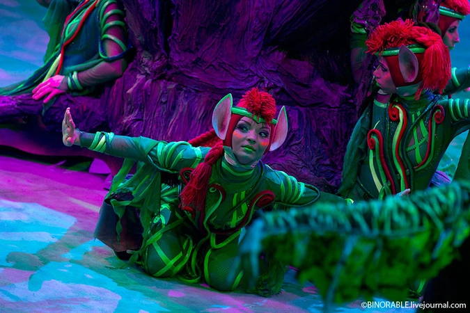 Цирковая программа представлена не набором цирковых номеров, а номера органично вписаны в сказочную историю. Причем картинка соответствует современным голливудским стандартам и отличие ее только в том, что зритель видит живой спектакль, а не псевдо 3D. К сожалению, современная фотокамера не может передать весь спектр красок, не прибегая к компьютерной графике, поэтому нужно идти в цирк и смотреть спектакль.