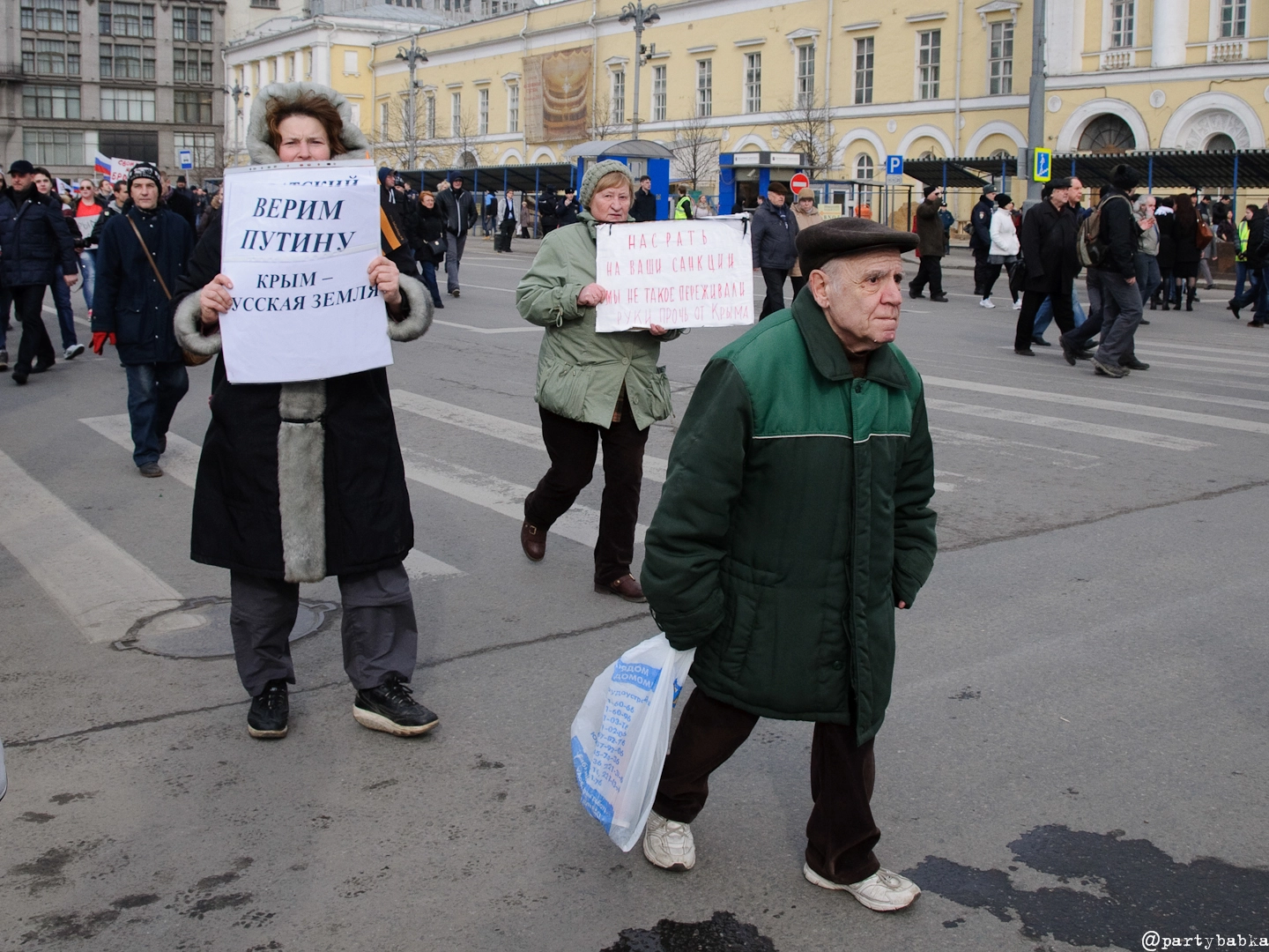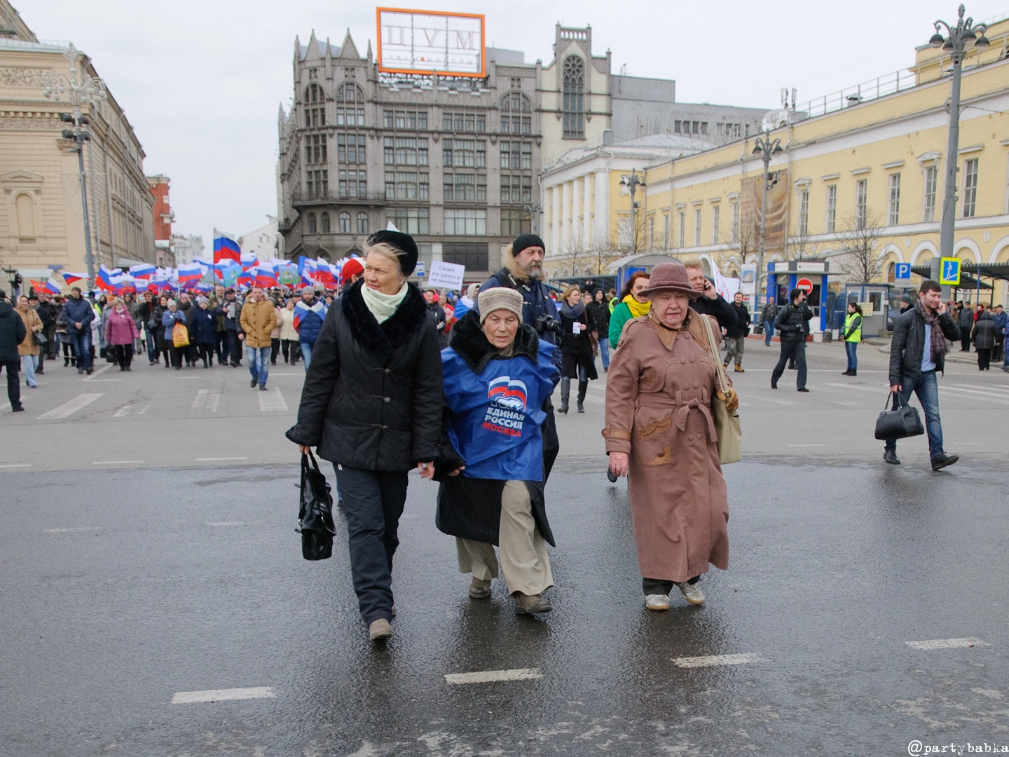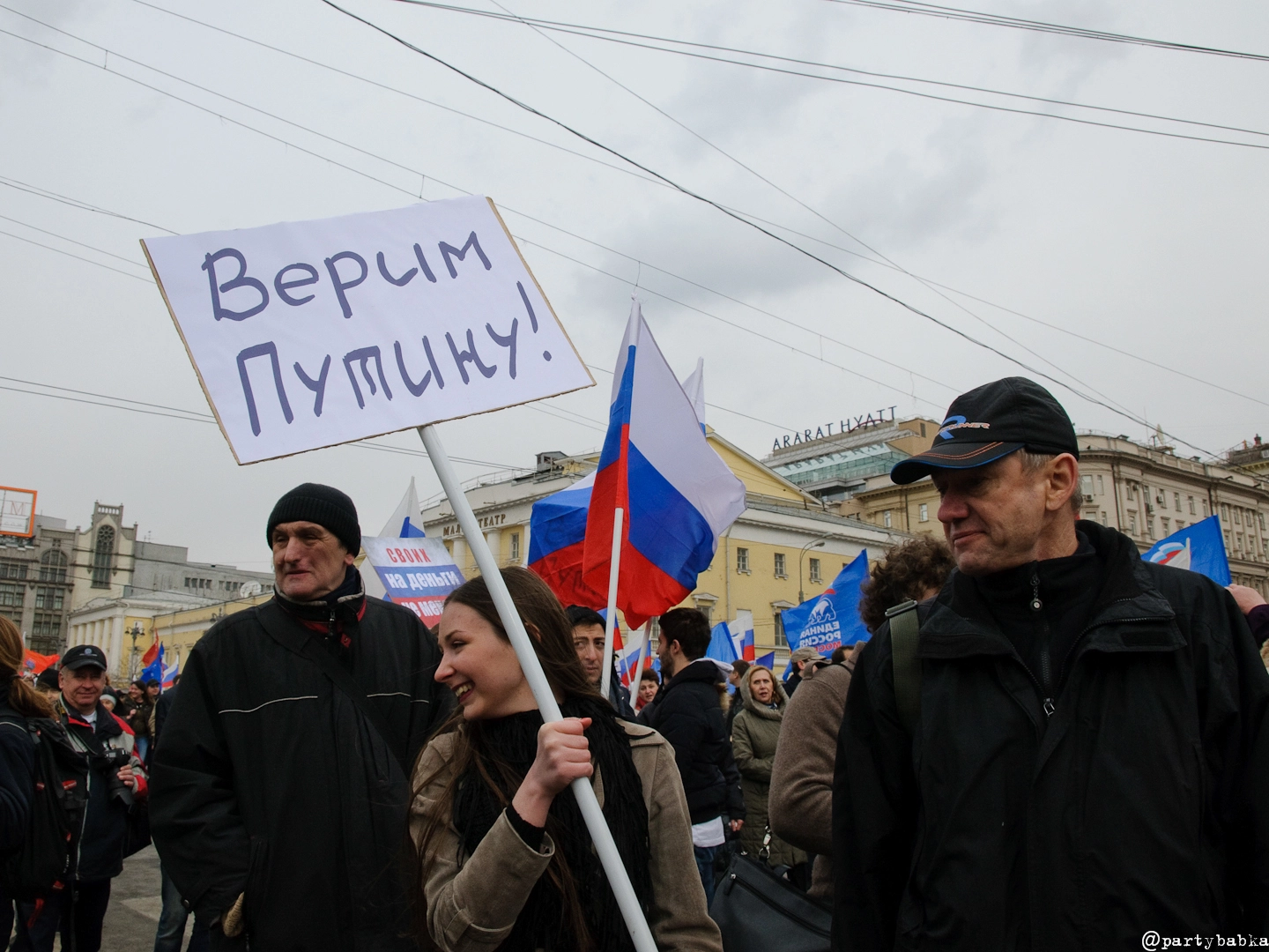 В субботу 15 марта в Москве прошла акция в поддержку то ли Крыма, который хочет присоединиться к России, то ли действующей власти, которая это присоединение поощряет, то ли против фашизма, то ли против еще чего. Я так и не поняла.