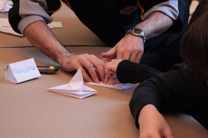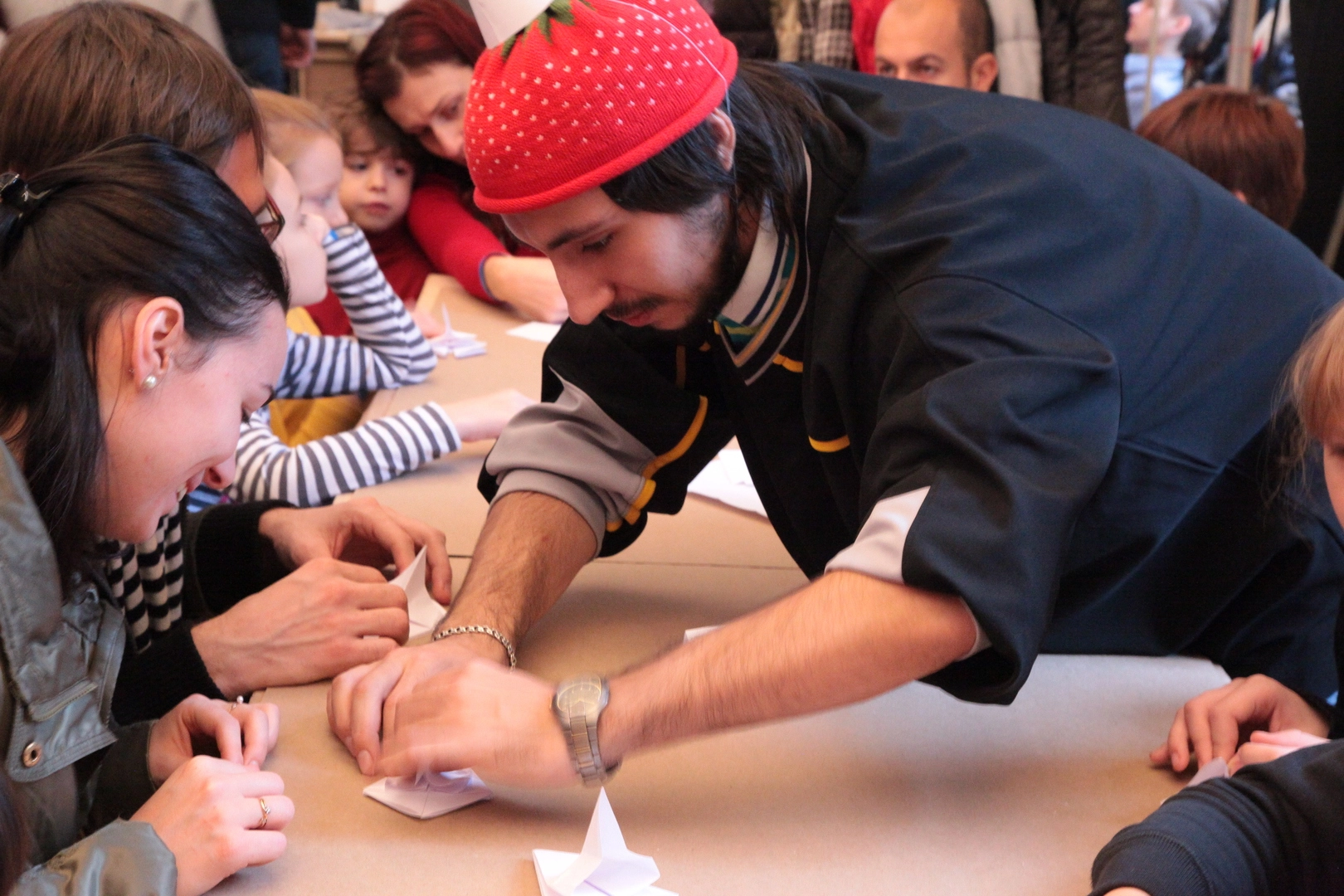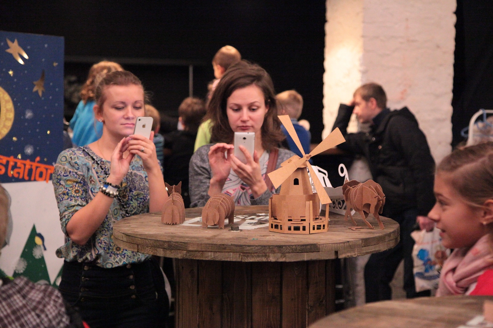 Мастер-классы разделены тематически: красный, синий, зелёный и жёлтый столы развлекали своих маленьких и больших гостей. Любой желающий может создать открытку, напечатать гравюру, овладеть навыками каллиграфии, оригами, украшения в технике квиллинга. А главное – всё своими руками!