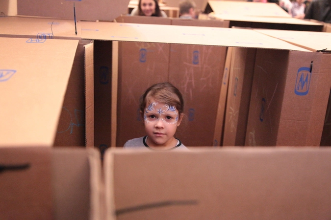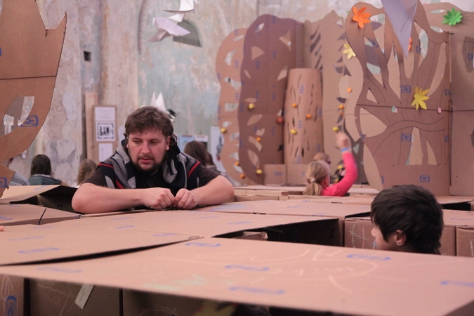 «Чтобы опробовать нужно несколько минут. Но то, что пробуем мы, ни в сравнение не идёт с тем, что дети делают. Есть моменты узкие, как в городе, когда куча машин встречается вместе и надо их как-то разруливать – здесь то же самое, - объясняет Валентин, создатель лабиринта в центре "Бумократии". - Дубовый лабиринт сделать легко. Поставить толстые-толстые стены из склеенного картона, такие, что даже автомобиль их не пробьёт. Но это же некрасиво! … Я дежурю по лабиринту, как Минотавр! Я пытаюсь его как-то спасти, потому что дети… они очень любимые, но уничтожают они влёт! А когда к ним добавляются взрослые…»