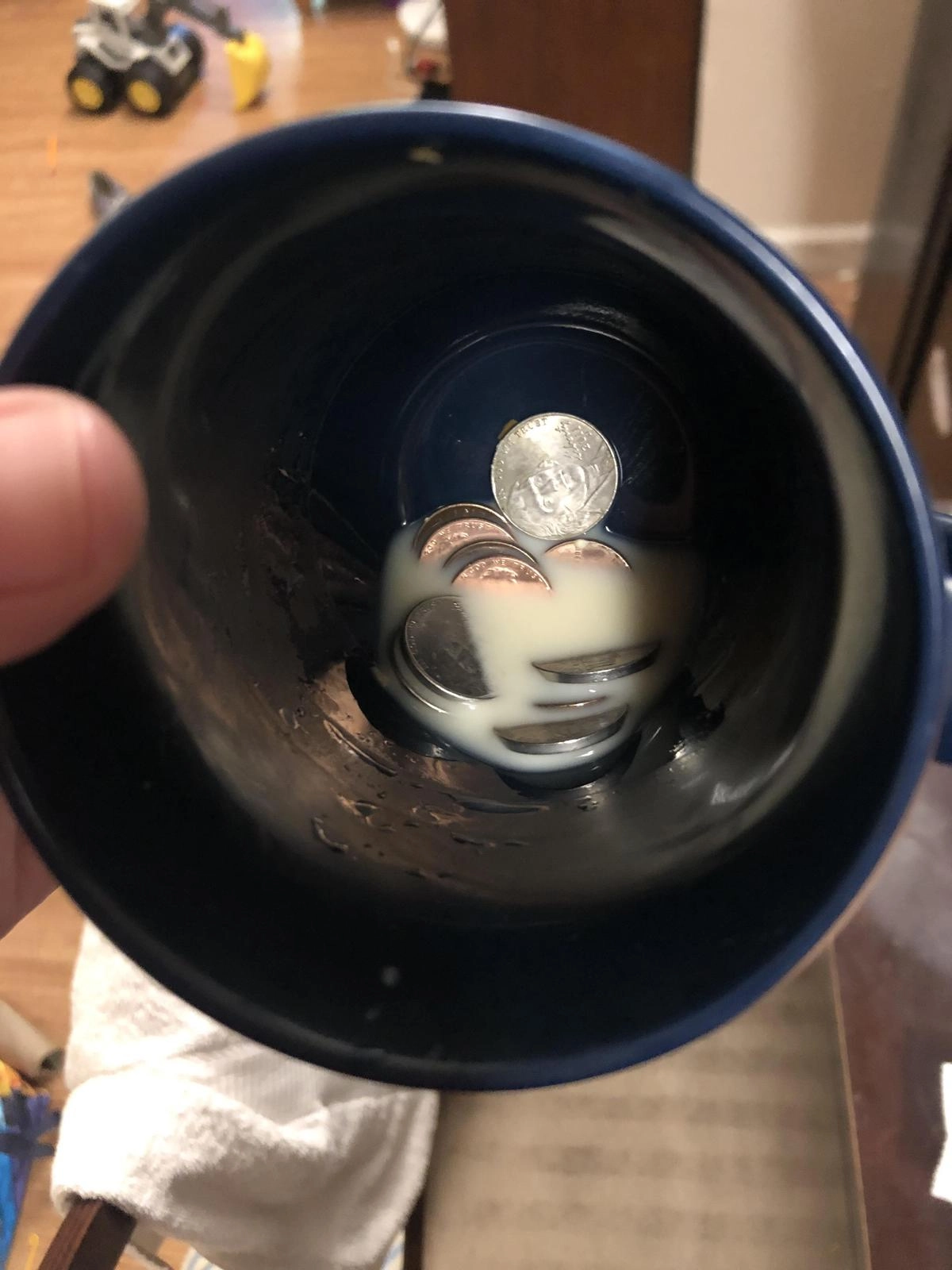 «Почти допила свой чай, который был со странным привкусом, между прочим, и только потом обнаружила на дне монеты. Оказалось, что сынок решил спрятать в кружке свой „клад“»