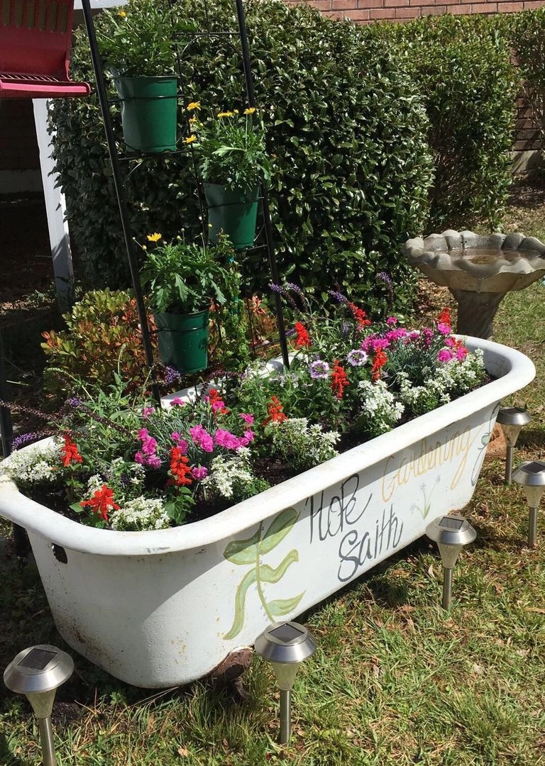 Из ненужных ванн выходят отличные клумбы для цветов или даже маленький пруд.