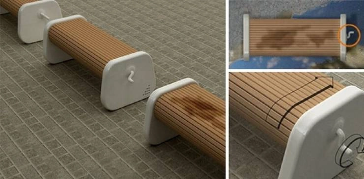 Скамья, которую можно повернуть на сухую сторону после дождливого дня