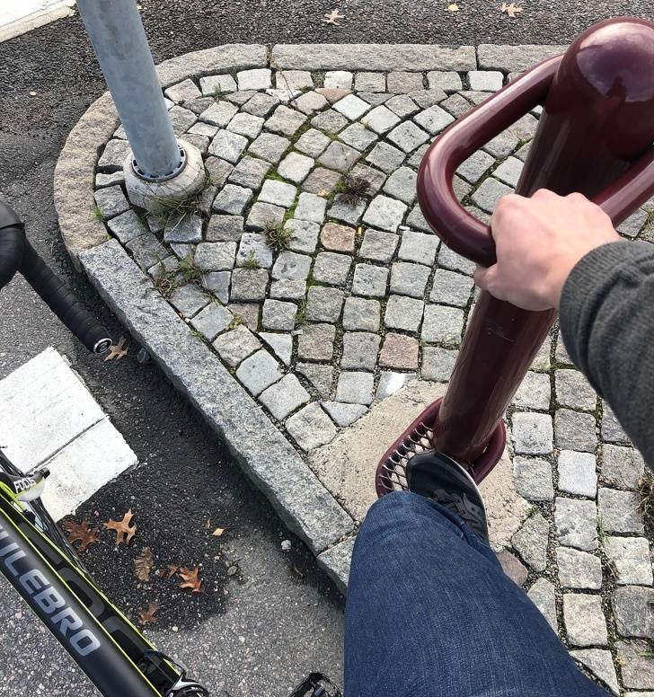 Столб для велосипедистов, чтобы облокотиться в ожидании зеленого сигнала светофора