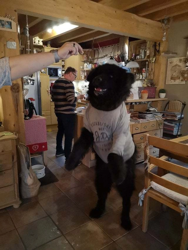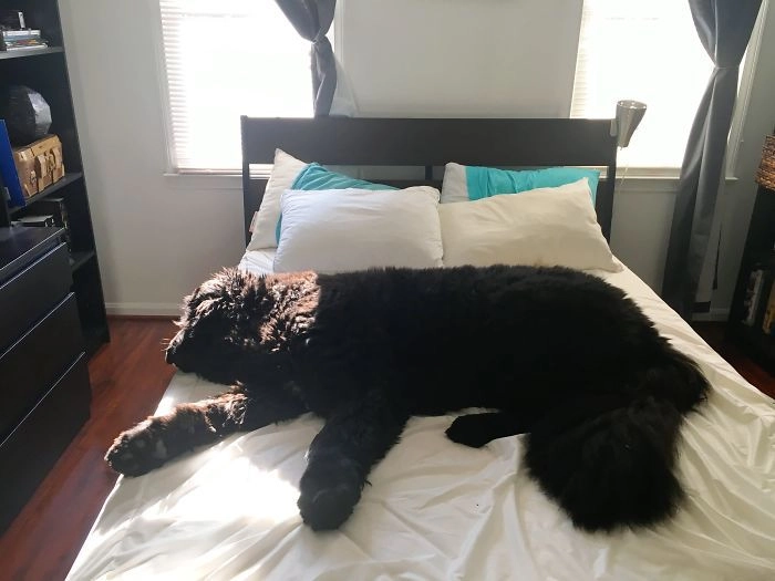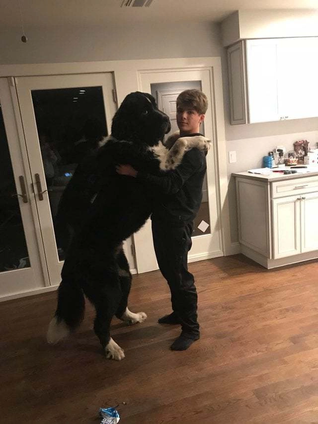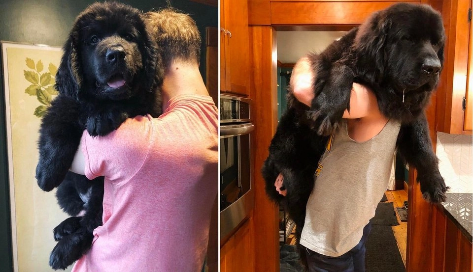 12. «Зашёл на кухню и подумал, что к нам забрался медведь! Ах нет, это же мой малыш-ньюфаундленд»