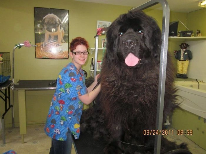 Собаки породы ньюфаундленд известны своими огромными размерами, роскошной густой шерстью и любовью к воде. Пятые по величине в мире, эти псы достигают высоты до 70 сантиметров в холке и вырастают весом до 70 килограммов. Окрас шерсти обычно чёрного цвета, встречается коричневый и с белыми пятнами. Между пальцами у ньюфаундлендов перепонки. В России этих собак иногда называют водолазами.