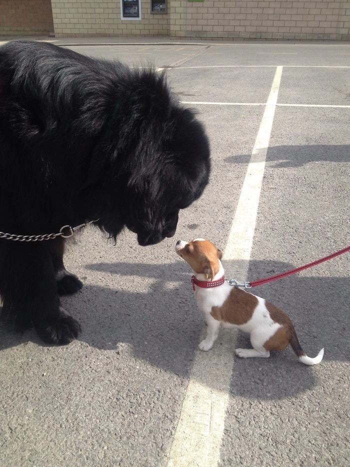 8. «Я люблю, когда мой ньюф встречает маленькую собаку»