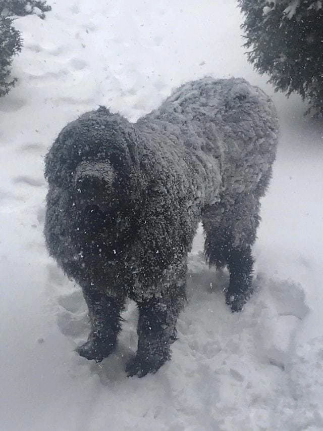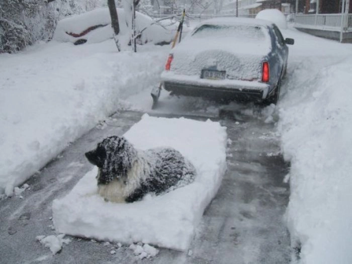 15. «Мой ньюф обожает снег и не любит, когда я его убираю»