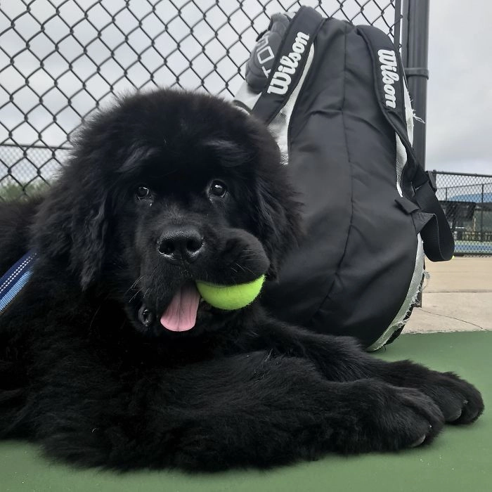 18. «Мой ньюф обожает игру в большой теннис и всегда рад помочь»