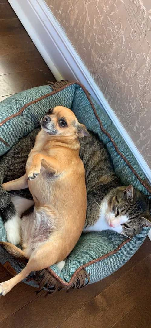 Эта собака счастлива, что добилась благосклонности кошки