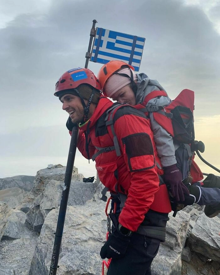 Спортсмен из Греции Мариос Гианнаку помог девушке-инвалиду исполнить мечту — подняться на гору Олимп