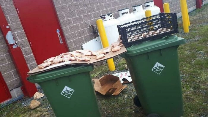 Мусорные баки, которые кое-то использует в качестве подставки для размораживаемых продуктов