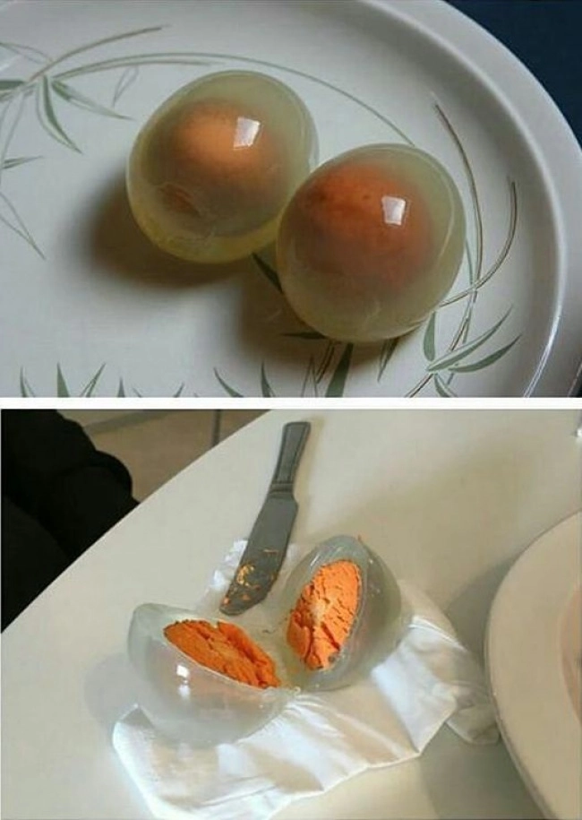 Завтрак из параллельной Вселенной (на самом деле это яйца пингвинов — у них белый белок)