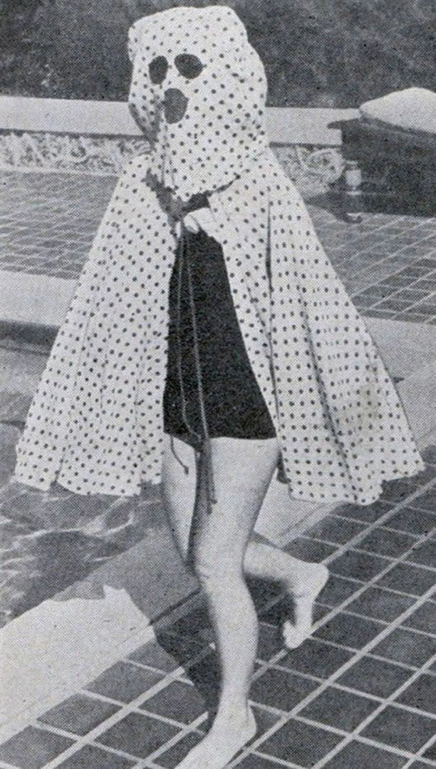 С помощью подобной накидки девушки защищались от солнечных лучей до изобретения солнцезащитных кремов