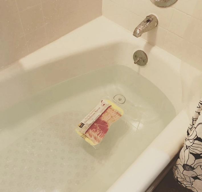 А этот хитрюга решил убить двух зайцев одним махом: набрать ребенку ванну и разморозить бекон для ужина
