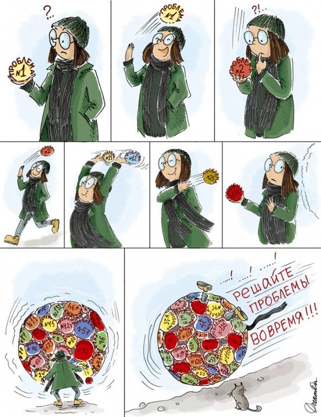 Жизненные ситуации, с которыми ежедневно сталкиваются женщины, талантливо проиллюстрировала художница Валентина Богданюк, известная в соцсетях под ником DreamOn. В её рисунках можно найти трудности утреннего подъёма, суету дедлайна, попытки заняться спортом и правильно питаться, а также тонкости жизни с мужчиной и воспитания детей.