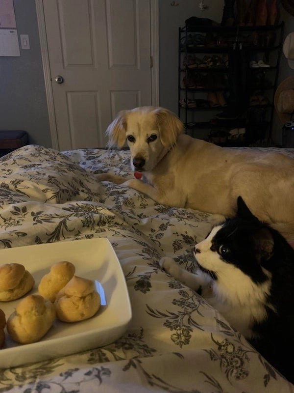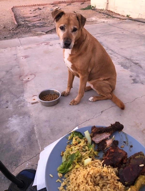 Многие питомцы, даже получив свой корм, заглядываются на обед хозяина. Похоже, в такие моменты их терзают смутные сомнения по поводу того, чья еда вкуснее.