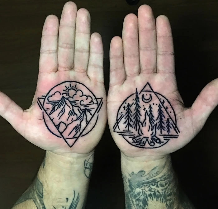Далеко не все согласятся, что делать татуировки на ладонях — это хорошая идея. Да и место не сказать, чтобы лёгкое для работы, к тому же краска будет быстро выцветать. Тем не менее, оказывается множество неординарных людей делают татуировки на ладонях рук и хвастаются результатом в интернете. Собрали для вас самые любопытные идеи — от солнца и звёзд до брокколи и ножниц, если вдруг вы тоже захотите раскрасить свои руки.