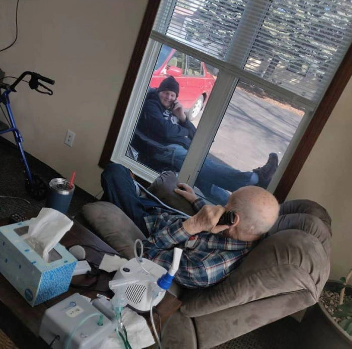 Парень каждый день приходит поговорить со своим отцом, так как дом престарелых находится на карантине
