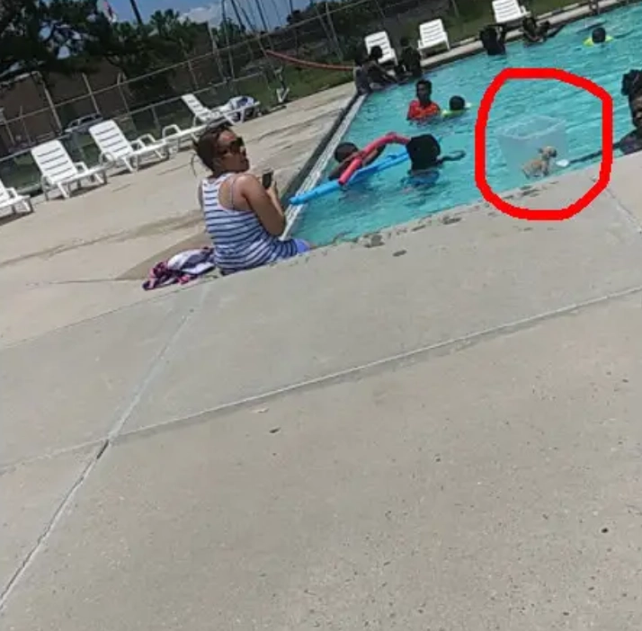 Просто собака, плавающая в бассейне в контейнере. Ничего необычного