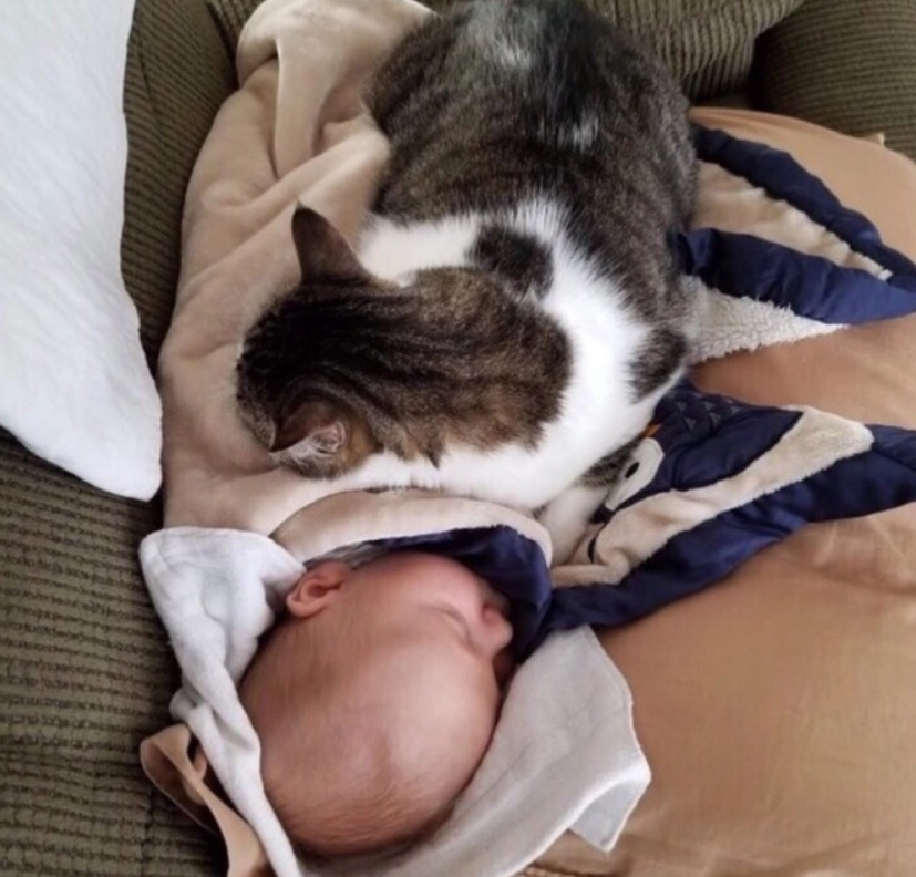 «Наш ребенок заплакал, а потом резко перестал. Судя по всему, кот хотел, чтобы мы немного отдохнули»