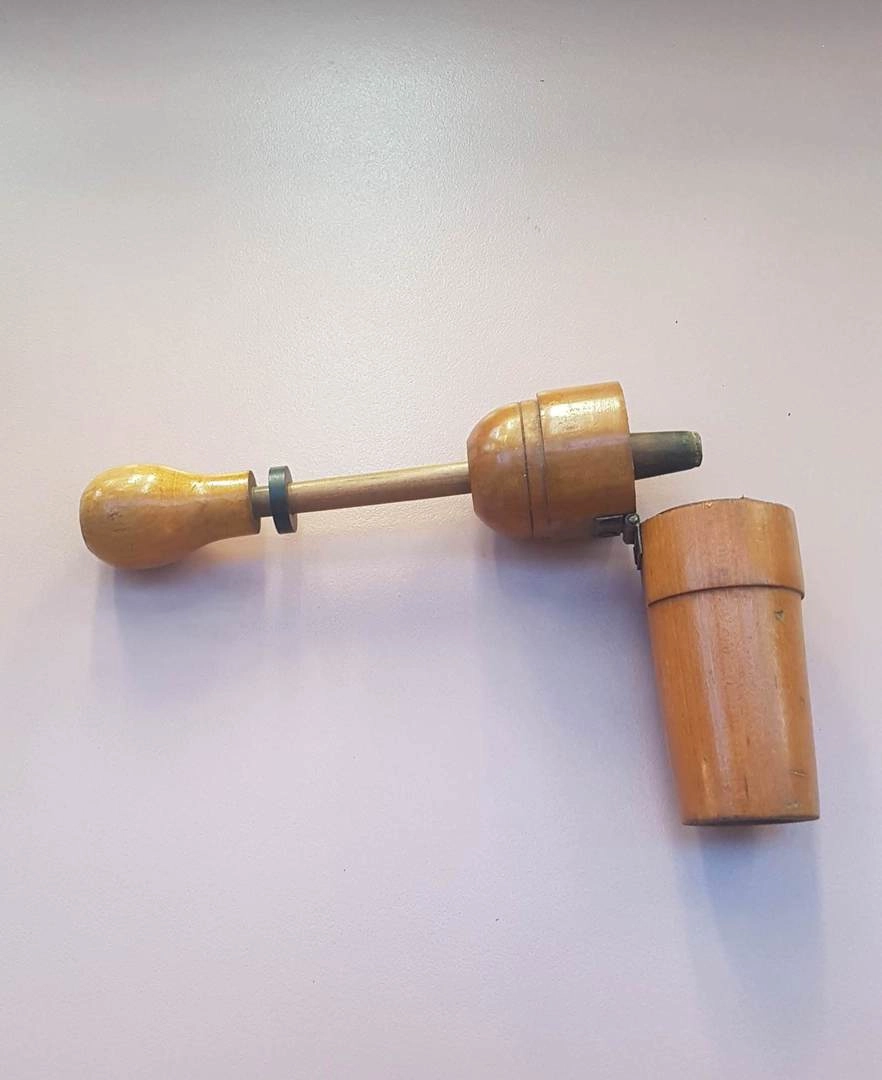 Ответ: на фото старый аппарат для закупорки винных пробок. С помощью штыка пробка вбивается в горлышко бутылки.