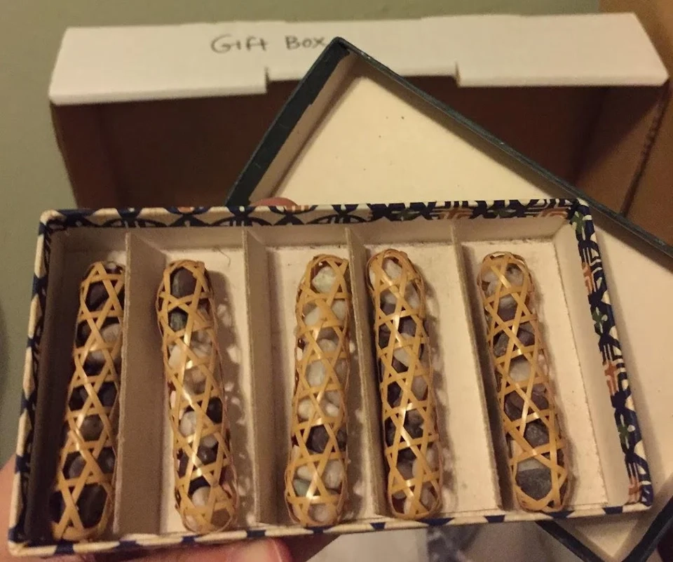 Ответ: это бамбуковые корзинки, набитые камнями. Служат подставкой для китайских палочек.