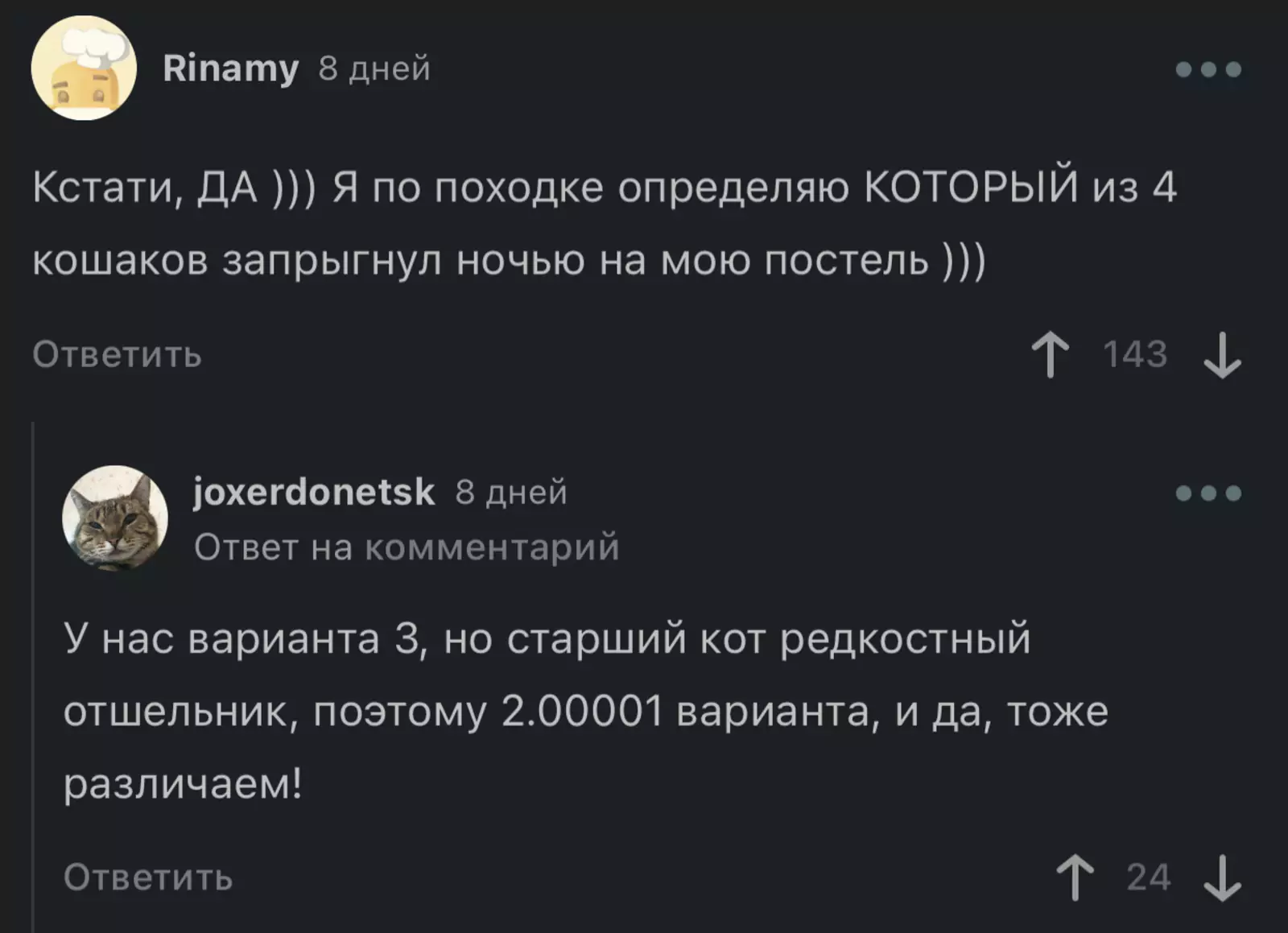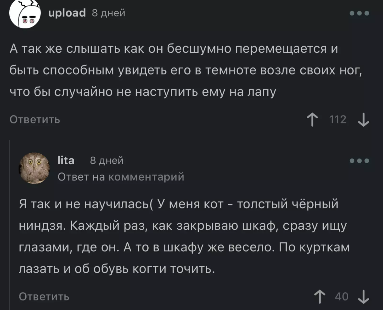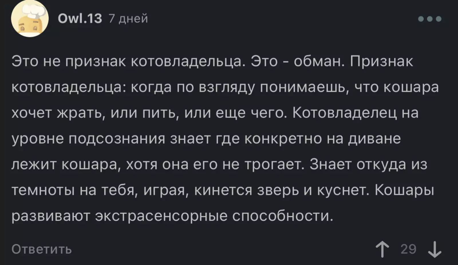 За ним последовали сотни комментариев, которые вполне могут составить список из сверхъестественных способностей каждого котовладельца.