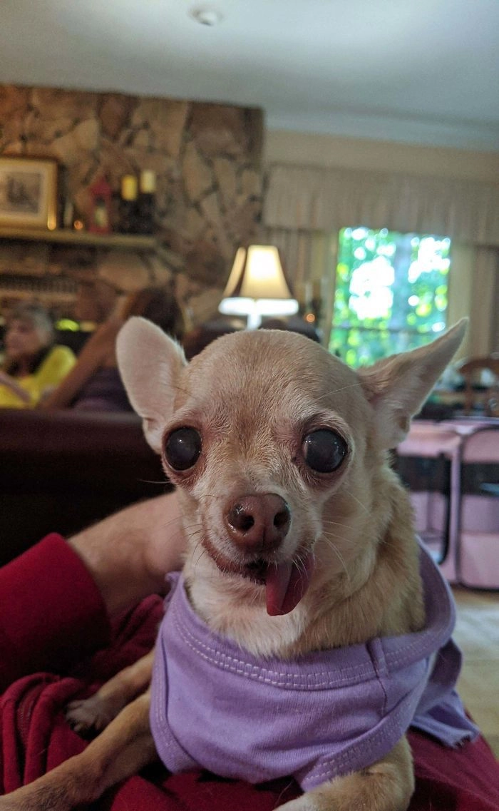 «Бабуля забрала этого ангелочка из приюта. Он обожает носить одежду, сделанную из рукавов футболки».