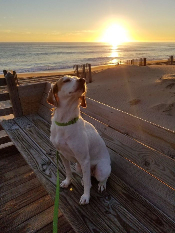 «Моя собака наслаждается восходом солнца спустя пару недель после того, как я ее „усыновил“».