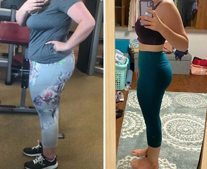«Улыбаюсь на обеих фотографиях, но лишь на одной я по-настоящему счастлива. Минус 30 килограмм за полтора года»