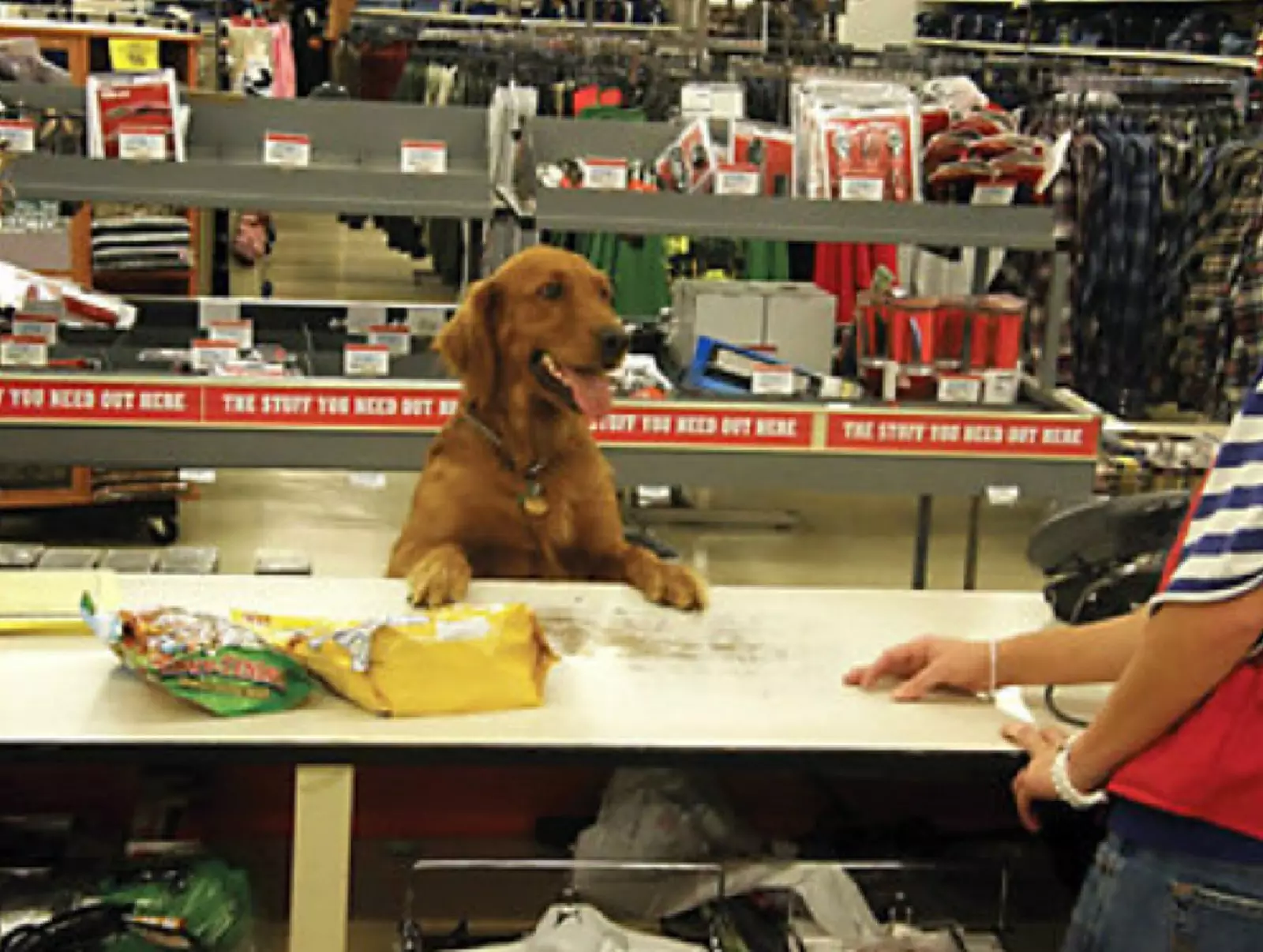 Собаки обожают проводить время с людьми. Поэтому они всегда с большой радостью отправляются вместе с хозяевами в любые магазины, даже в те, где не продаются вкусняшки. Мы собрали коллекцию снимков обаятельных пёсиков, которые поехали за покупками со своими владельцами.