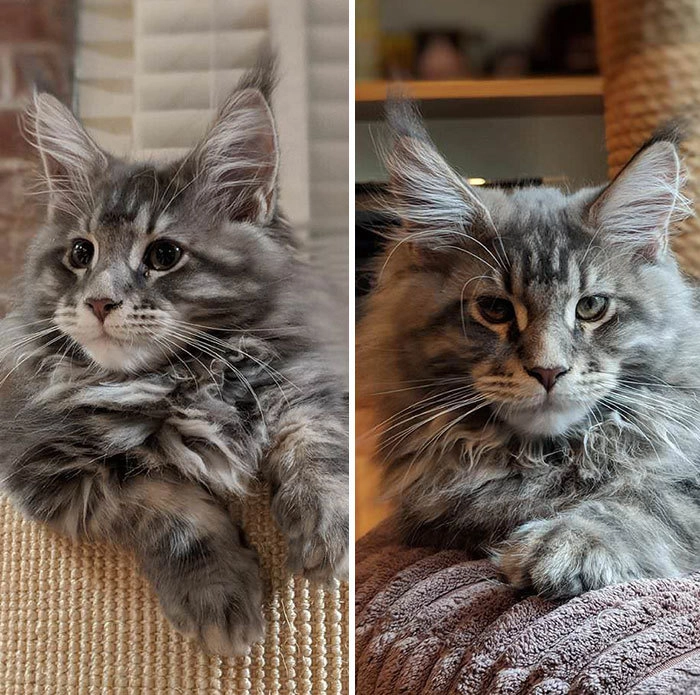 3. «Мейн-куны растут невероятно быстро! Слева — 3 месяца, справа — 6 месяцев»