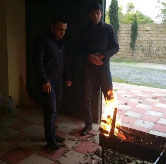Мужчина спокойно стоит, несмотря на то, что его нога горит
