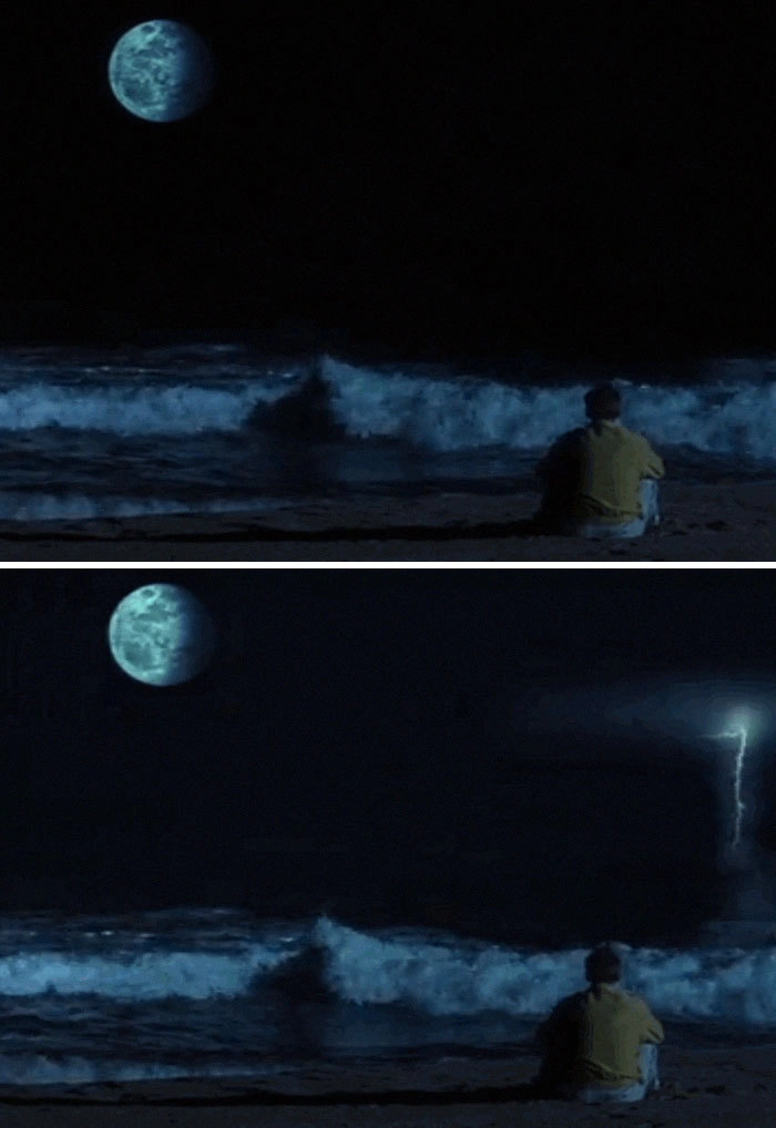 В фильме «Шоу Трумана» Луна становится ярче после удара молнии, что напоминает о ее нереальности