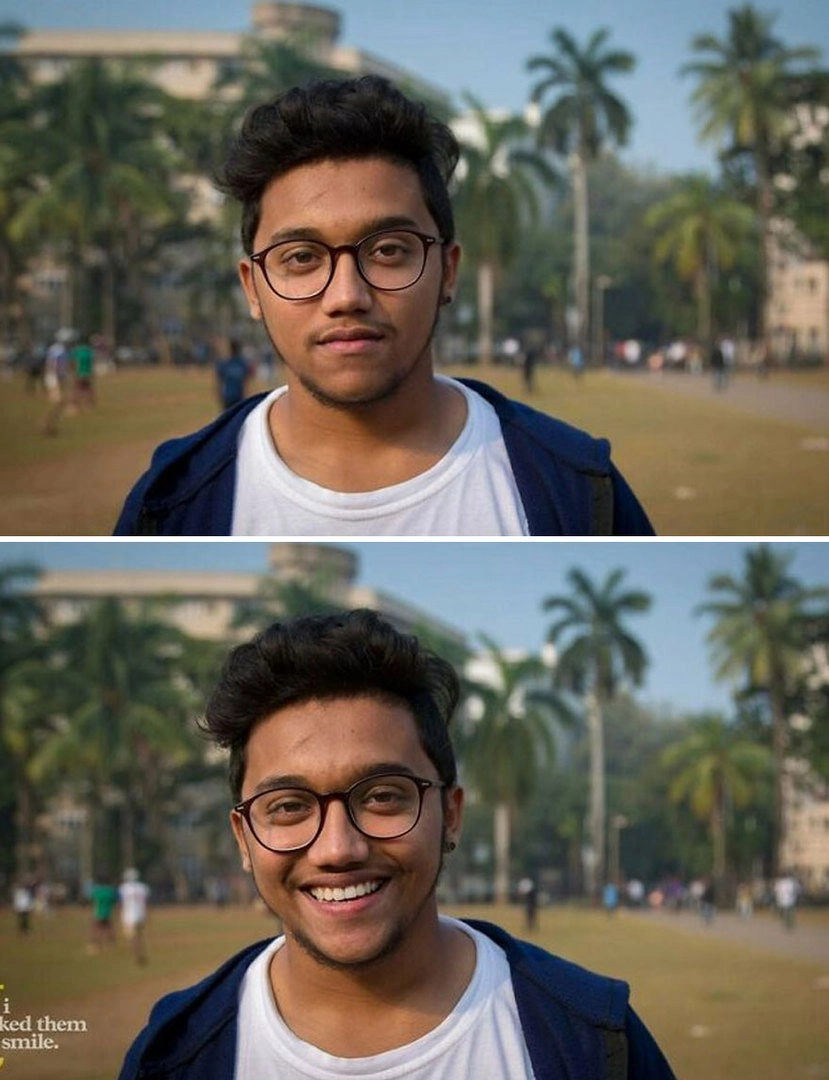 Фотограф из Австралии Джей Вайнштейн обожает путешествовать и знакомиться с новыми людьми. В 2015 году молодой человек создал необычный фотопроект под названием «Итак, я попросил их улыбнуться», в рамках которого он делает снимки незнакомцев на улицах до и после своей просьбы.