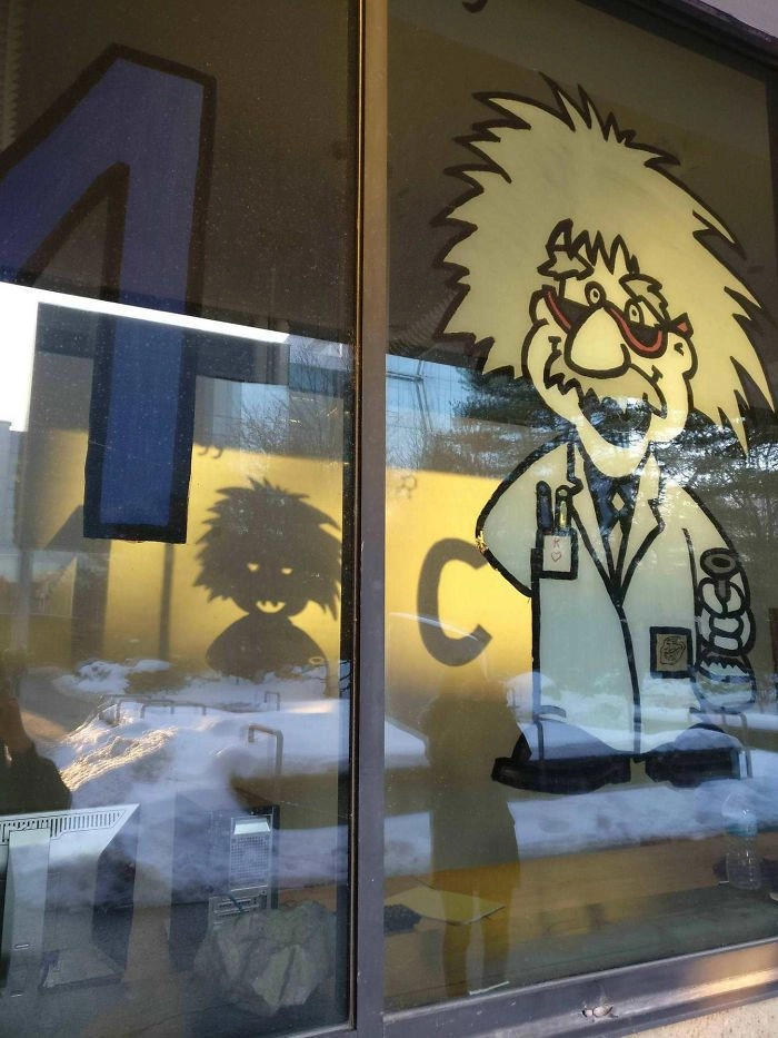 3. Эйнштейн на окне кафе отбрасывает зловещую тень